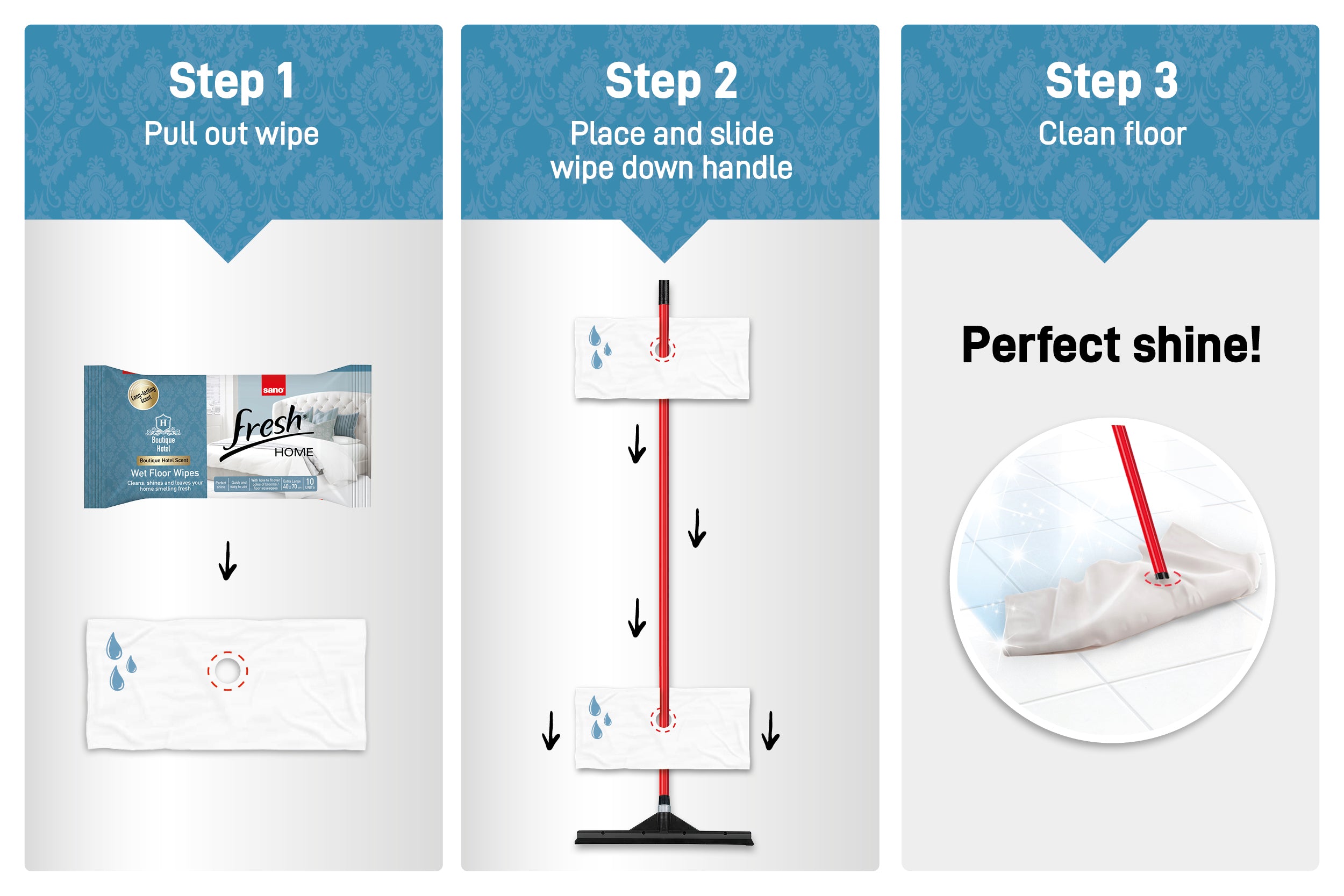 Wipe efficiently, effectively and have fun while maintaining your home, a real cleaning solution that’s simply the best. Unlike other floor cleaning wipes, ours are fit to use with any existing broom / floor squeegee / mop you have at home and are disposable, so you clean the dirt and not the broom.